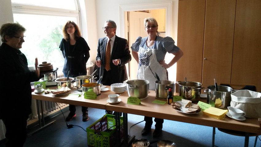 Nach dem traditionellen Erntedankgottesdienst gibt es seit Jahren im Anschluss ein Suppenbüffet im Pfarrhaus. Die leckeren Suppen sind von Kirchenvorstandsmitgliedern und engagierten Gemeindegliedern gekocht. In gemütlicher Runde können die Gäste verschiedene Suppen probieren, darüber klönen und sich die Rezepte für zu Hause gleich mitnehmen.